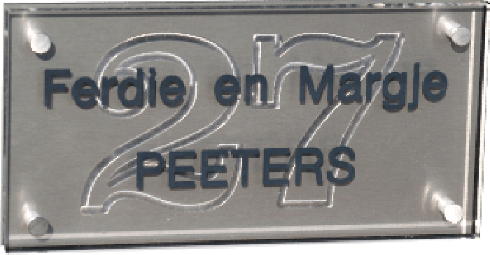 De acrylaat naamborden worden verdiept gegraveerd en in de gewenste letterkleur gelakt.